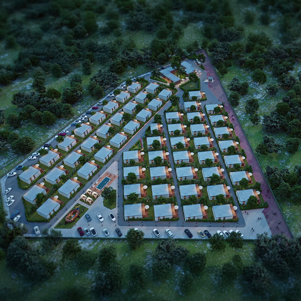 Her biri özel bahçe ve peyzajlı bağımsız kullanım alanına sahip 60 adet müstakil villa alanı